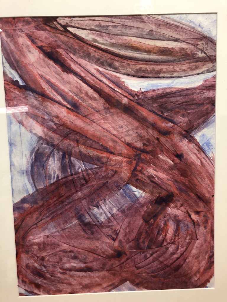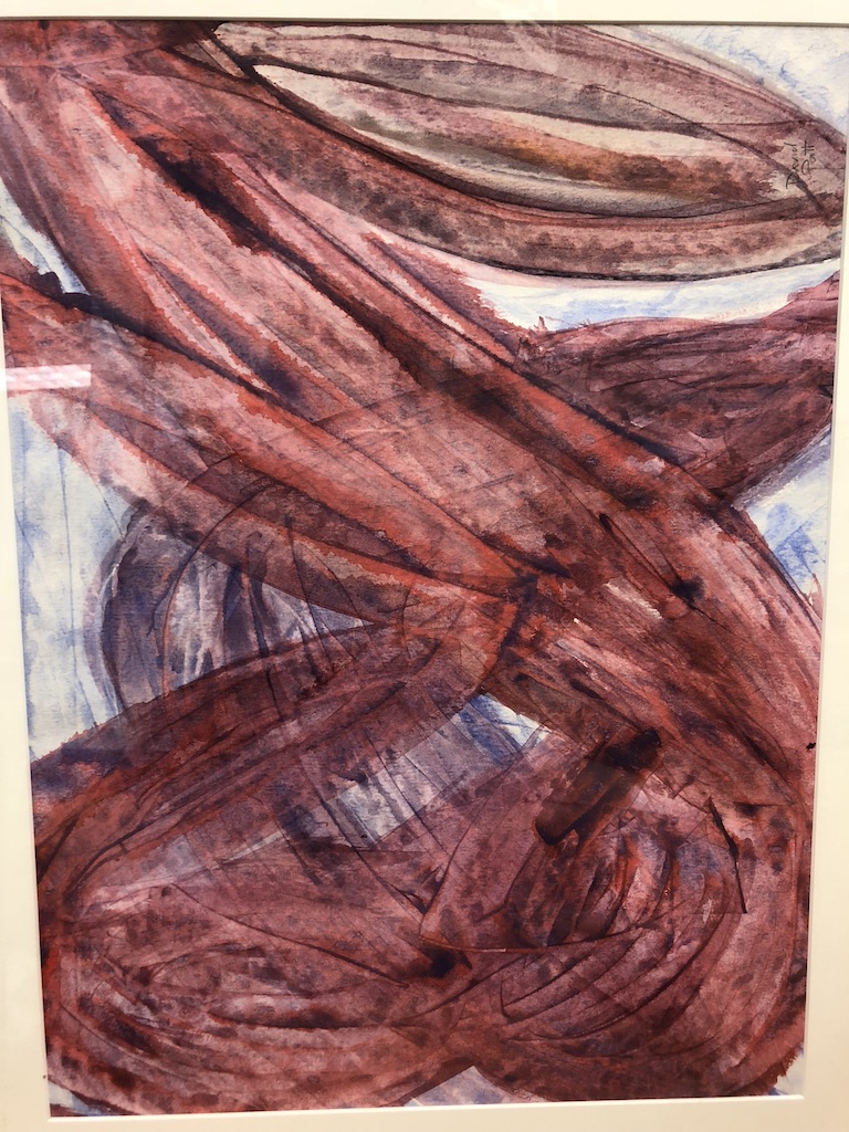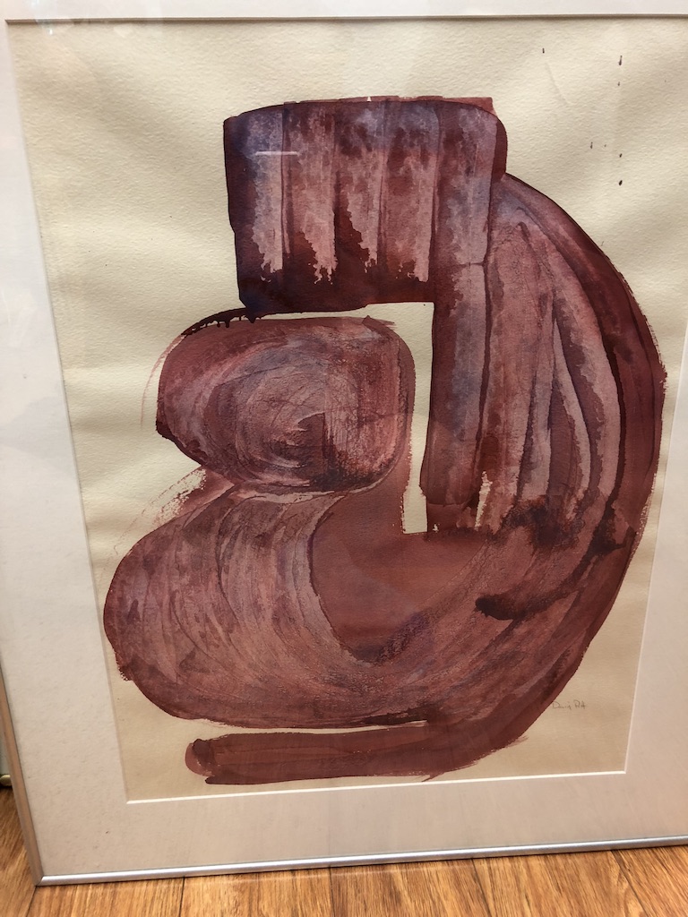 "Recently Ellie hung a sequined-filled watercolor in the hallway gallery